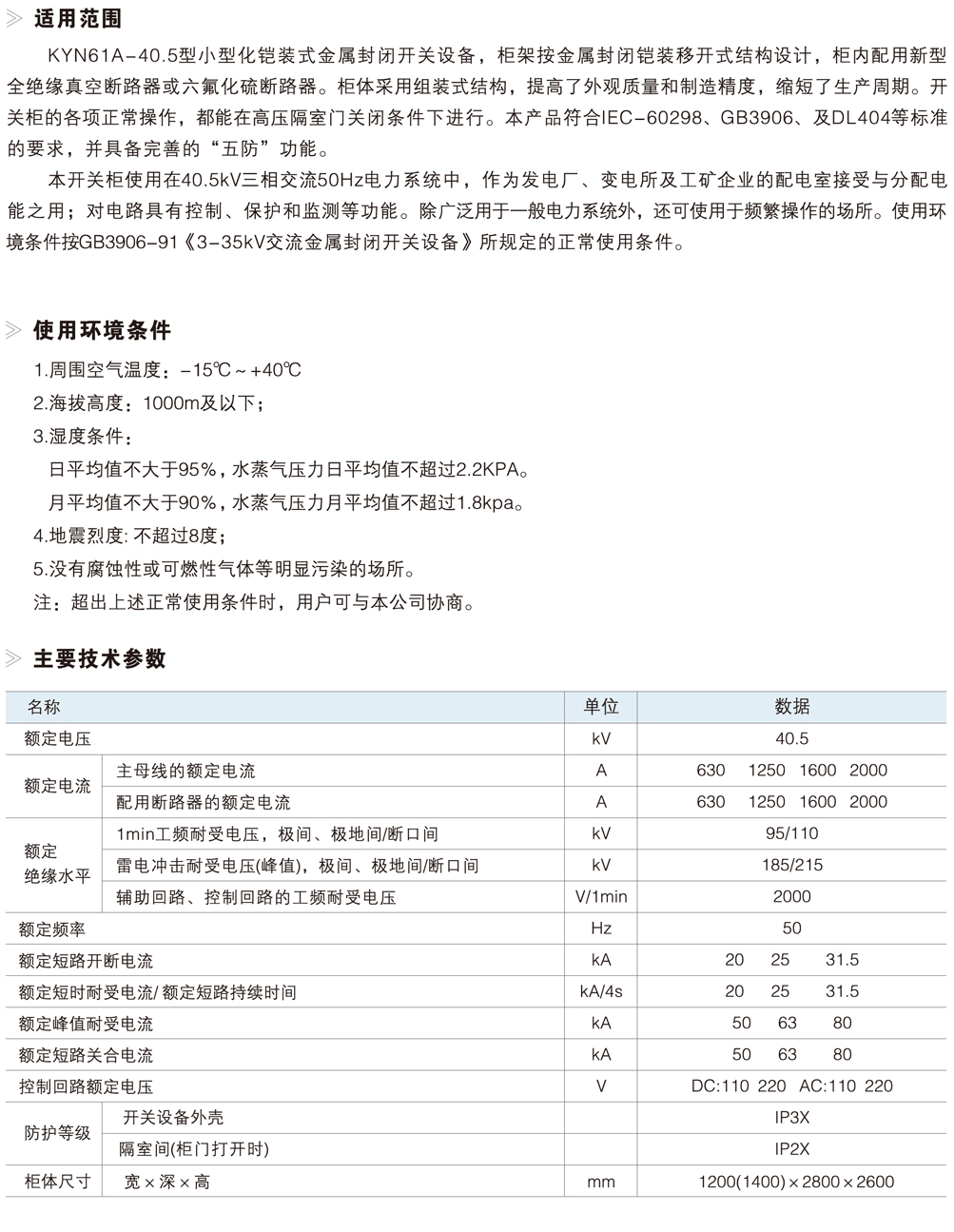 KYN61-40.5(Z)铠装移开式交流金属封闭开关设备