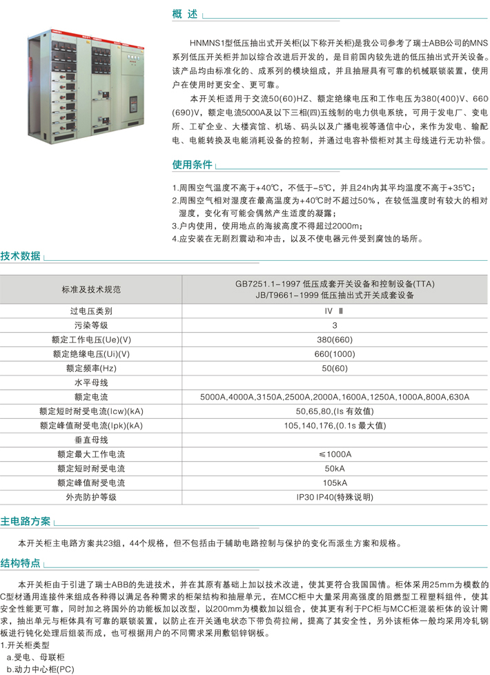 HNMNS1型低压抽出式开关柜