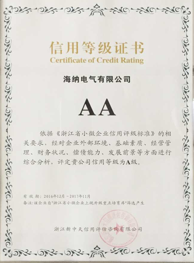 Credit rating certificate